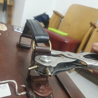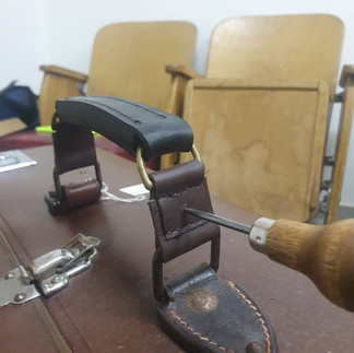 In seinem Koffer fand sich, fast wie durch einen glücklichen Zufall, ein alter, stabiler Ersatzgriff. Ich nutzte ihn für die Reparatur, vernähte ihn, vernietete ihn. Funktional. Stabil. Und doch – mit so viel Respekt für die Geschichte, die dieses Stück Leder in sich trug, dass es keine bloße Reparatur war, sondern eine stille Hommage an gelebtes Leben.